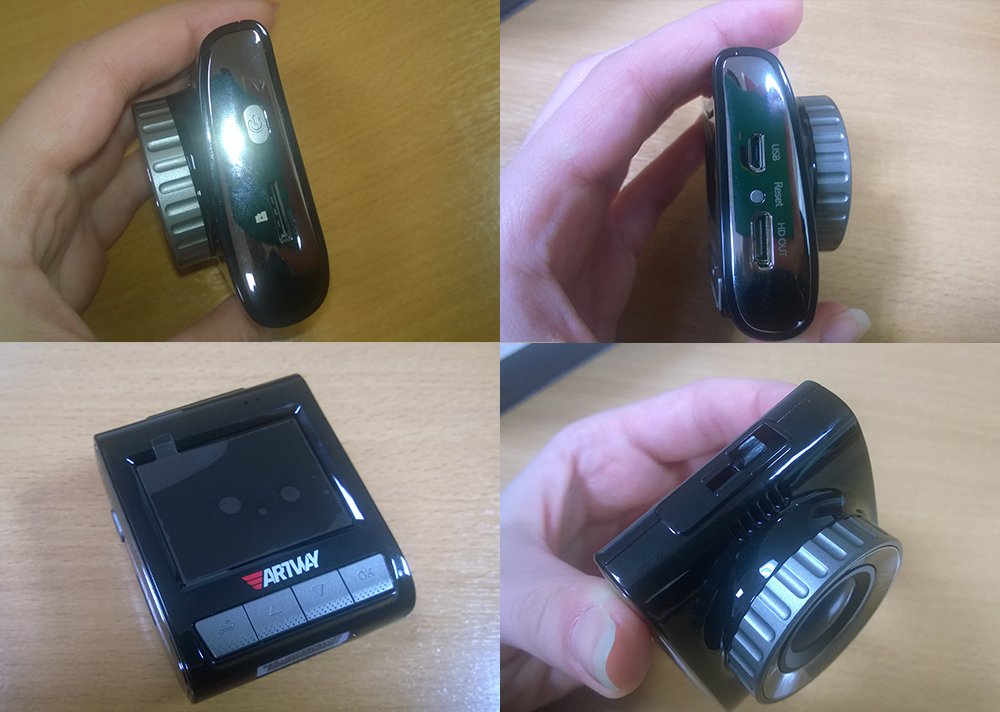 Динамик под объективом. Слоты USB, HDMI и кнопка Резет на одной стороне, кнопка Питания и слот под SD карту на другой. Основные кнопки управления находятся под дисплеем. Удобно лежит в руке во время настройки или просмотра видео, несмотря на компактный размер. Экран небольшой, но достаточно информативный, в целом, все видно. Кнопки нажимаются приятно, не гремят и не заедают. Расположение кнопок удобное и звук нажатия интересный) по крайней мере не раздражает.