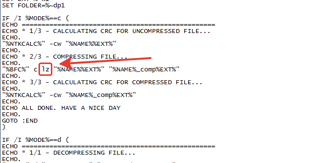 8. Нет, все верно. Просто эта команда для старой версии bfc.exe. Как окажусь дома, обновлю папку с утилитой, выложив версию скрипта для новой версии bfc, которой данный параметр (lz) уже не требуется.