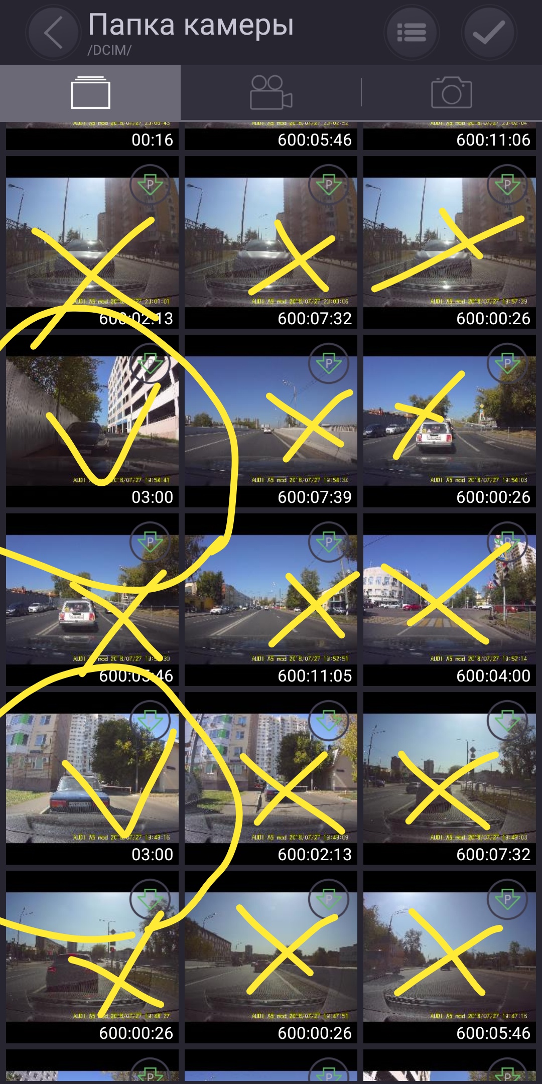 Например, в настройках стоит запись файлов по пять минут, но автомобиль остановился через две минуты и было выключено зажигание. По этому питание регистратора прерывается и он не успевает дописать данное видео до конца. Вот это и будет битый файл в 600 минут.
