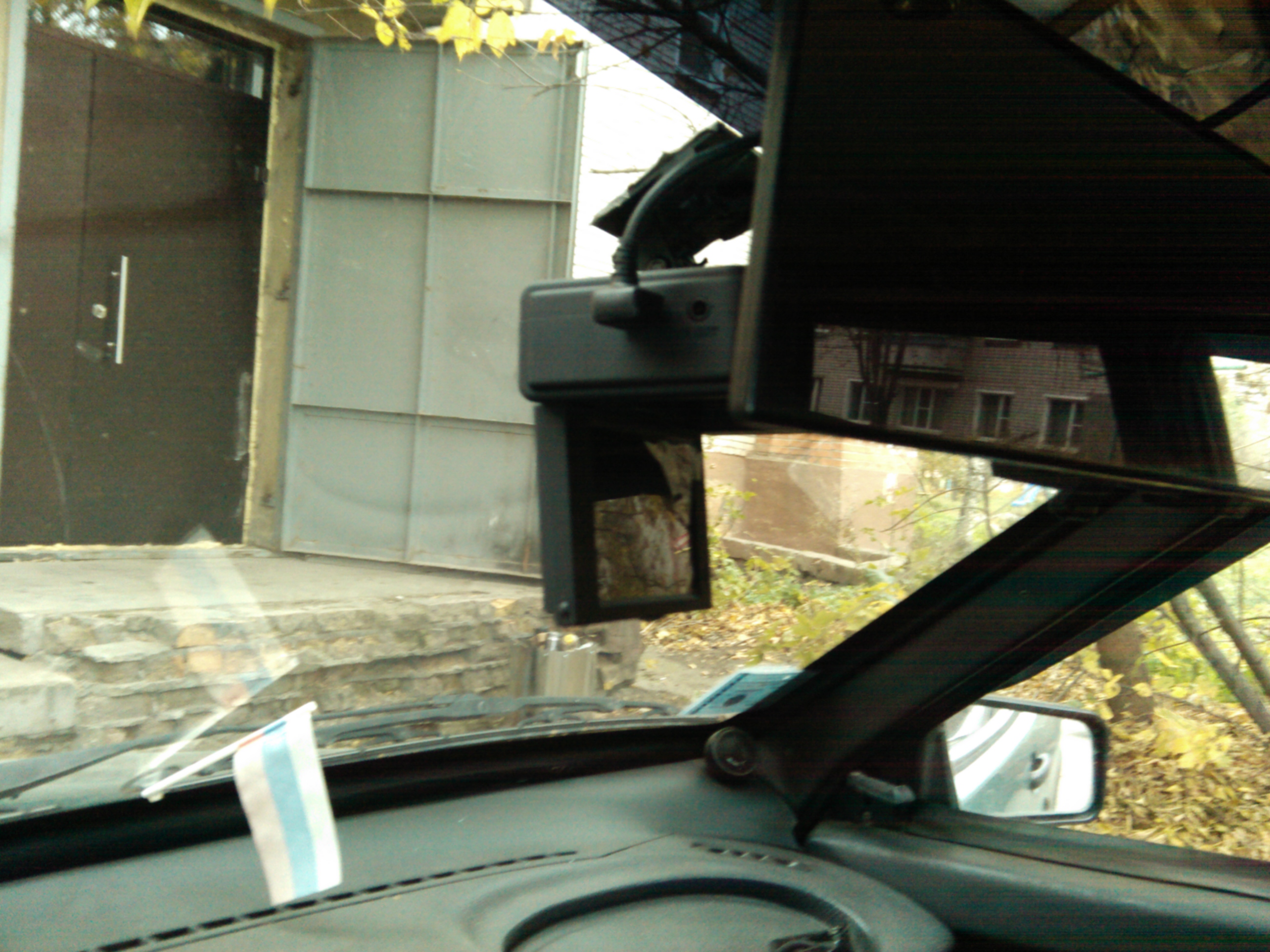 Т.к. зеркало большое, пришлось повесить пониже, стекло с шелкографией+полоса, спутники на раз-два ловит, крепёж на липучке - снятие /установка -2 сек. Поворотное крепление.