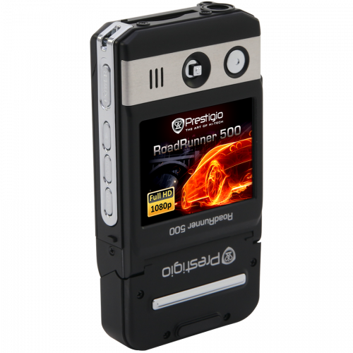 Небольшой и лёгкий, видеорегистратор Prestigio RoadRunner 500 записывает видео качества Full HD с разрешением 1920x1080 с частотой 30 кадров в секунду и оснащён дисплеем диагональю 2,0 дюйма (5,1 см) на тонкоплёночных транзисторах (TFT) со светодиодными модулями подсветки, поэтому им можно пользоваться не только в автомобиле. Широкий (120 градусов) угол обзора обеспечивает практически панорамный вид, а технология HDMI позволяет записывать кристально чёткое изображение с чистым звуком. Электронная стабилизация изображения обеспечивает чёткость изображения даже при вибрации. Видеорегистратор RoadRunner 500 позволяет делать высококачественные фотоснимки с разрешением 12 мегапикселей. В этом видеорегистраторе также имеется щелевой разъём для дополнительной карты памяти объёмом до 32 ГБ. Видеорегистратор оснащён наиболее передовой технологией сжатия видео, обеспечивающей чрезвычайно длительное время записи. Характеристики: Камера Количество камер 1 Разрешение сенсора 5 Mpixel Технология датчика изображения CMOS Размер оптического сенсора 1/2 " Угол обзора 120° Поворотная камера Да Количество каналов записи 1 Recording Максимальное разрешение видео 1920x1080 (Full HD) Разрешение видео 848x480, 1440x1080, 1280x720 Частота кадров при максимальном разрешении 30 fps Максимальная частота кадров 60 fps Максимальное разрешение фото N/A Режим записи Циклический Видео кодек H.264 Формат цифрового видео MOV Дисплей Размер экрана 2" Разрешение экрана N/A Технология дисплея TFT Дополнительные Особенности N/A Поворотный дисплей Нет Память Объем встроенной памяти N/A Поддержка карт памяти SD, SDHC Емкость карты памяти в комплекте с устройством N/A Интерфейс Внутренний интерфейс данных mini-USB Аудио / видео интерфейс AV-выход, HDMI Дополнительная Информация Процессор N/A GPS Нет Тип установки Присоска Датчик движения Да Датчики N/A Запись аудио каналов 1 Цифровой зум 4x Подсветка N/A Встроенный динамик Да Встроенные устройства Микрофон Минимальная температура окружающей среды -5 °C Максимальная температура окружающей среды 40 °C Цвет Черный Материал корпуса N/A Входящие в комплект аксессуары Автомобильное зарядное устройство, Монтажный комплект, Кабель USB, HDMI-кабель, Руководство пользователя, AV-кабель, Чехол Тип упаковки розничная Дополнительная информация N/A Питание Возможные источники поставок Встроенный аккумулятор, Автомобильное зарядное устройство Емкость батареи 1000 mAh Технология батареи Литий-ионная Срок службы батареи 2,5 ч Габариты и вес Ширина 100 мм Высота 52 мм Глубина 35 мм Вес 85 г