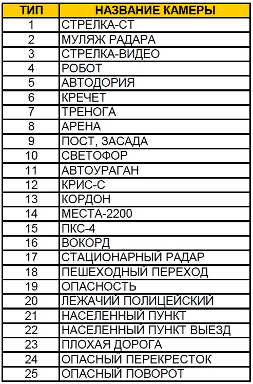 15. С сайта mapcam.info можно скачивать для разных навигаторов (база отличается набором типов точек POI). Самая полная для PocketGIS (на картинке). Что такое RadarDroid я не знаю.