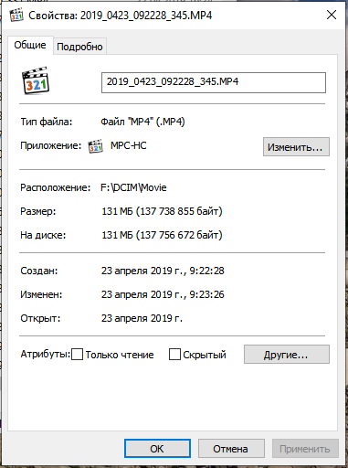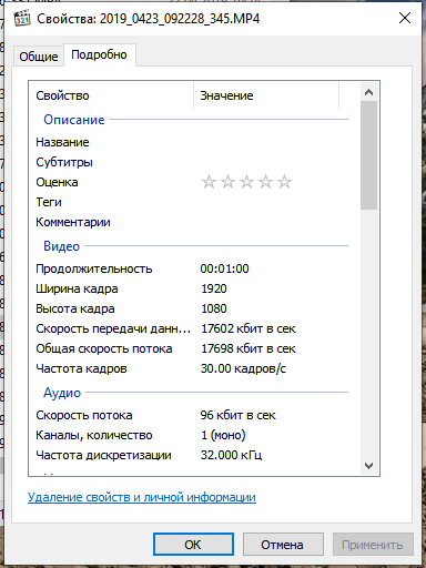 Сейчас посмотрел свои сегодняшние пробы 30 к/с. Тут битрейт падает ровно наполовину. Не зная этого, я поставил качество среднее и получилось 14700 кб/с. Видео при стоянке - отличное, при скорости "иду пешком" - нормальное, чуть выше - уже явно не хватает. Завтра посмотрю с высоким качеством... Но не забываем, прошивка тестовая. Так что придираться тут не надо. Работают, проверяют, вносят изменения...