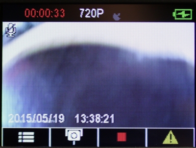 Четыре аппаратные клавиши под дисплеем предназначены для выхода в: меню параметров, просмотра записанного материала, начала фото- и видеосъемки. Во время съемки можно нажать клавишу №4 "Экстренная запись"/"Аварийная ситуация" (желтый восклицательный знак), тогда текущий файл будет сохранен в отдельной папке EMER (Emergency) на карте памяти