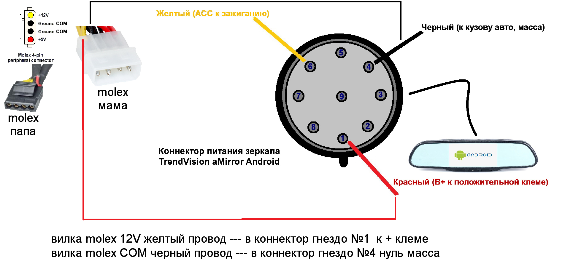 USB в расчет не беру - на зеркале оно подходит только для прошивки, но для питания не вариант. А вот сколько ампер надо для полноценной работы зеркалу?! Искал в инете информацию по силе тока в электросети машины, тут все сильно различается от места подключения. Местами 8 ампер (те же фары), на стартере до 600А и т.д. В инете нашел что БП компа может давать на провод 12В от 8А до 10А. В моем случае, подключение АСС реализовано через предохранитель Clock на 10А, значит это возможный максимум в данном участке цепи (если правильно все понимаю - я не электрик). Сколько ампер на постоянном плюсе я не знаю.Суммируется ли его питание с АСС или оно просто управляет сном и на него можно вообще забить?! Буду дома еще проверять работу зеркала с одним питанием. Может кто-то посмотреть сколько ампер на красном проводе в салонном OBD разъеме? Узнав эту величину, можно будет сделать вывод о необходимой силе тока для нормальной работы зеркала.