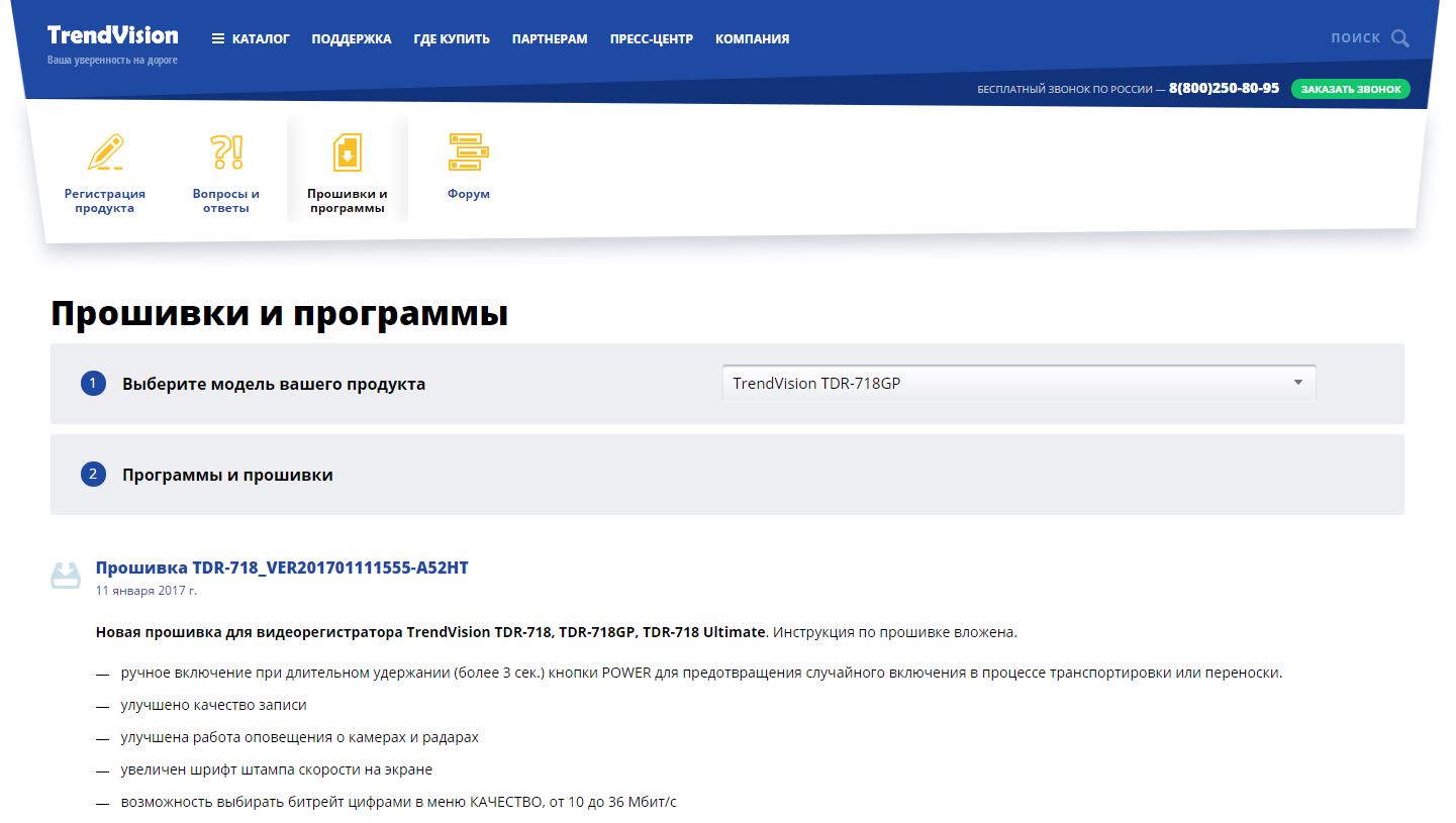 TrendVision TDR-718GP Спойлер: Характеристики Процессор - Ambarella A7LA70 Матрица - OmniVision OV4689, CMOS 1/3', 4Мп Оперативная память - 2GB DDR3 NAND память - 128MB Разрешение видео - 2304х1296p 30 к/с, 2560х1080p 30к/с, 1920x1080p 60к/с, 45к/с, 30 к/с, 1280х720p 60к/с, 30 к/с Разрешение фото - 1920х1080 Оптика - Стеклянный объектив, 6 линз, F=1.8, f=2.8мм, угол обзора - 160° (115° по горизонтали) Монитор - 2.7", высококонтрастный Внутренняя память - нет Выключение монитора - есть, автоматически, настраивается в меню, 10 сек., 30 сек., 1 мин Циклическая запись - есть, потоковая запись без пропусков между файлами, настраивается в меню, 1 мин. - 15 мин Две камеры - Нет Дополнительно в комплекте нет Температурный диапазон - от -20°С до +50°С Габариты - 95х40х54 (мм) Вес - Около 85 гр. ( без кронштейнов) Часовая батарея Суперконденсатор - 0,22Ф для сохранения даты и времени Аккумуляторная батарея - Встроенная, 300мА/ч, около 15 минут автономной работы при выключенном мониторе Режим воспроизведения - есть, стоп-кадр, ускоренная перемотка вперед/назад, замедленная перемотка вперед/назад Сжатие - Н.264 (Mpeg-4, part.10) Наложение даты и времени - есть, настраивается в меню Автоматическое включение - есть, при подаче внешнего питания, настраиваемая задержка в меню Питание - 12-24В. Зарядное устройство для автомобильного прикуривателя в комплекте Язык меню - русский, английский Карта памяти - microSD до 128GB, SD до 32GB Bit rate - 10-36 мб/с, настраивается в меню G-сенсор - есть, возможность отключать через меню GPS - есть, выносной блок CPL-фильтр - есть, быстросъемный на магните 37мм Датчик движения - есть, управление через меню Микрофон - есть, возможность отключать кнопкой или через меню Динамик - есть, регулировка громкости через меню, возможность отключать кнопкой HDMI-порт - есть, для подключения к цифровому монитору или TV, разрешение 1920х1080i AV-порт - нет USB-порт - есть, miсroUSB 2.0 Автоматическое выключение - есть, при снятии внешнего питания, настраиваемая задержка в меню Госномер - есть, настраивается в меню, 11 знаков, анг. язык и цифры Защита файлов от перезаписи - есть, кнопкой или с помощью G-сенсора Время записи на карту - 32 ГБ около 3-х часов, на карту 128ГБ около 12 часов, в максимальном разрешении Спойлер: FAQ FAQ на Google.Docs от участников форума (настройки, прошивки Оф. и МОД, SpeedCam, ссылки) Если регулярно "слетает" прошивка, регистратор отключается во время работы, горит только синий светодиод - см. по ссылкам ТП - от @ag-70 (пост.#16946 стр.848) Про повышенный битрейт (bit rate) и карты памяти: Рекомендуется использование скоростных карт памяти из-за повышенного битрейта в ПО. Чем выше битрейт - тем больше и по объему занимает места ролик на карте. Если вы не видите разницы 36мбит/сек - против 20мбит/сек, то нет смысла ставить максимальный битрейт. Как лучше всего настроить регистратор? Оптимальными настройками для всех разрешений на официальном ПО будут значения по умолчанию или (стоковые). Также можно сказать, что у всех разные предпочтения, настройки приведенные ниже для MOD’ов Trend Vision TDR-718 (MDR-710) подбирались пользователями опытным путем и считаются максимально оптимальными для дня и ночи Сравнение качества сьемки и детализации WideFHD и FullHD на разрешениях 2560x1080 и 1920x1080 (днем) пост #4874 стр.244 от @Kaliningrad ночью FullHD уже обходит WFHD по детализации Какая карта памяти необходима? В виду применения повышенного битрейта в современных видеорегистраторах, рекомендуется брать карты с запасом по скоростным характеристикам с индексом U и о