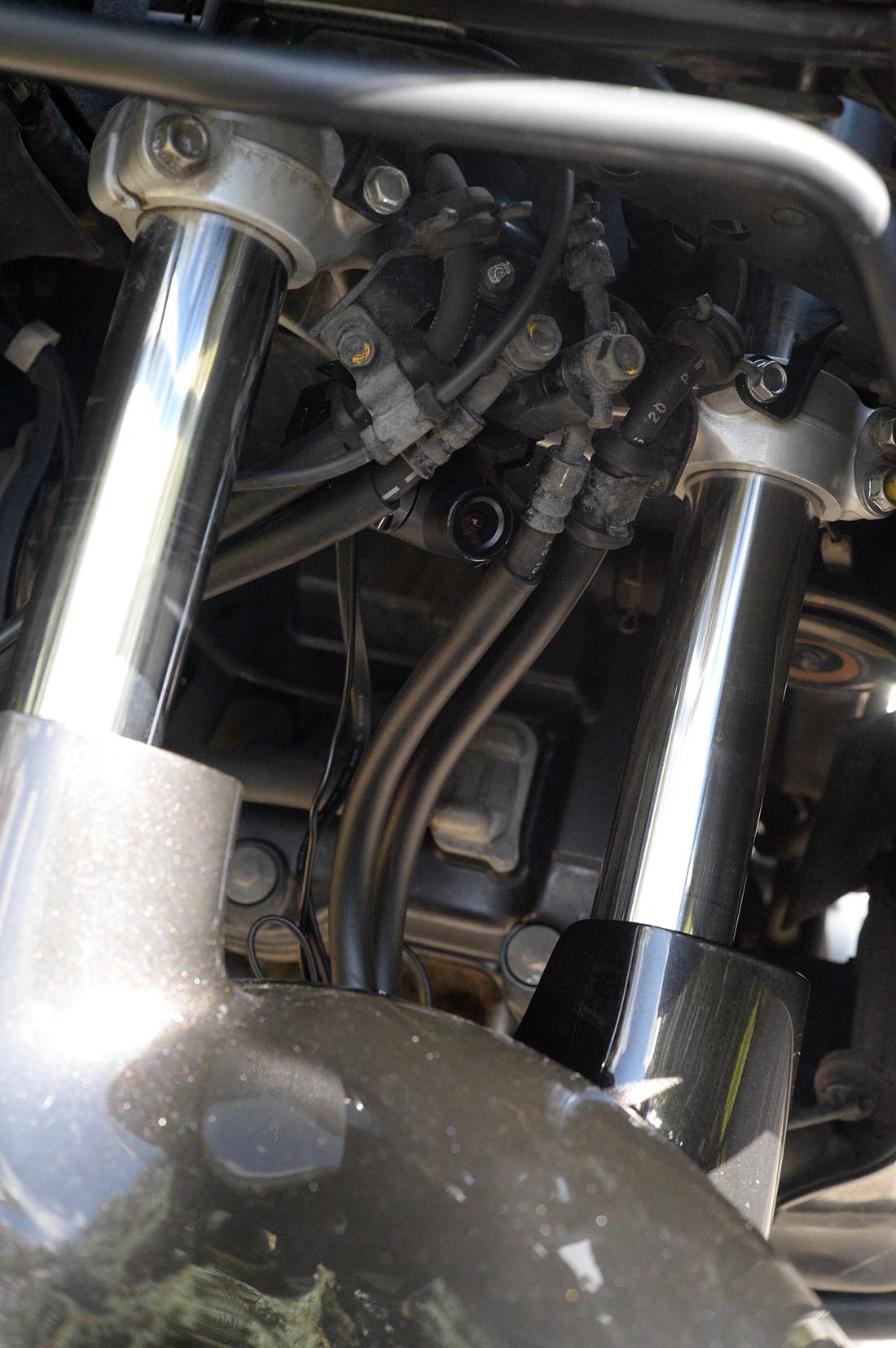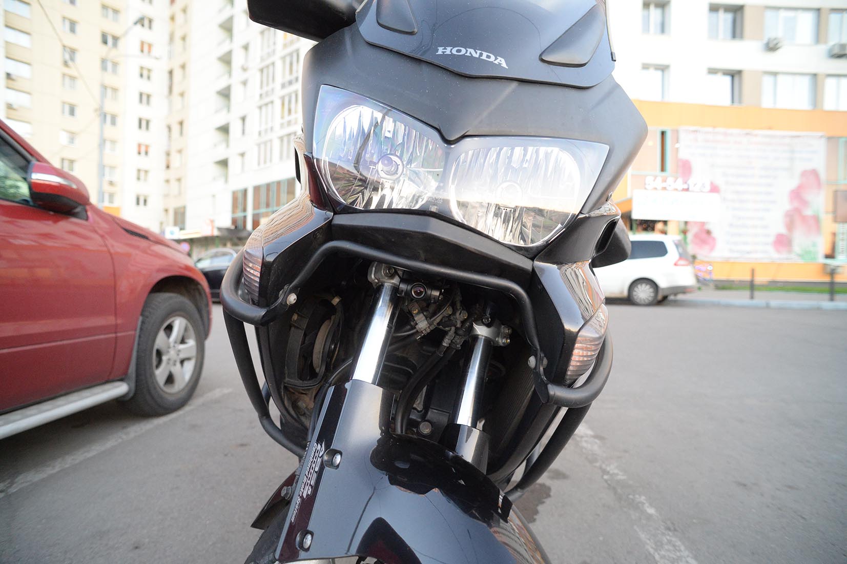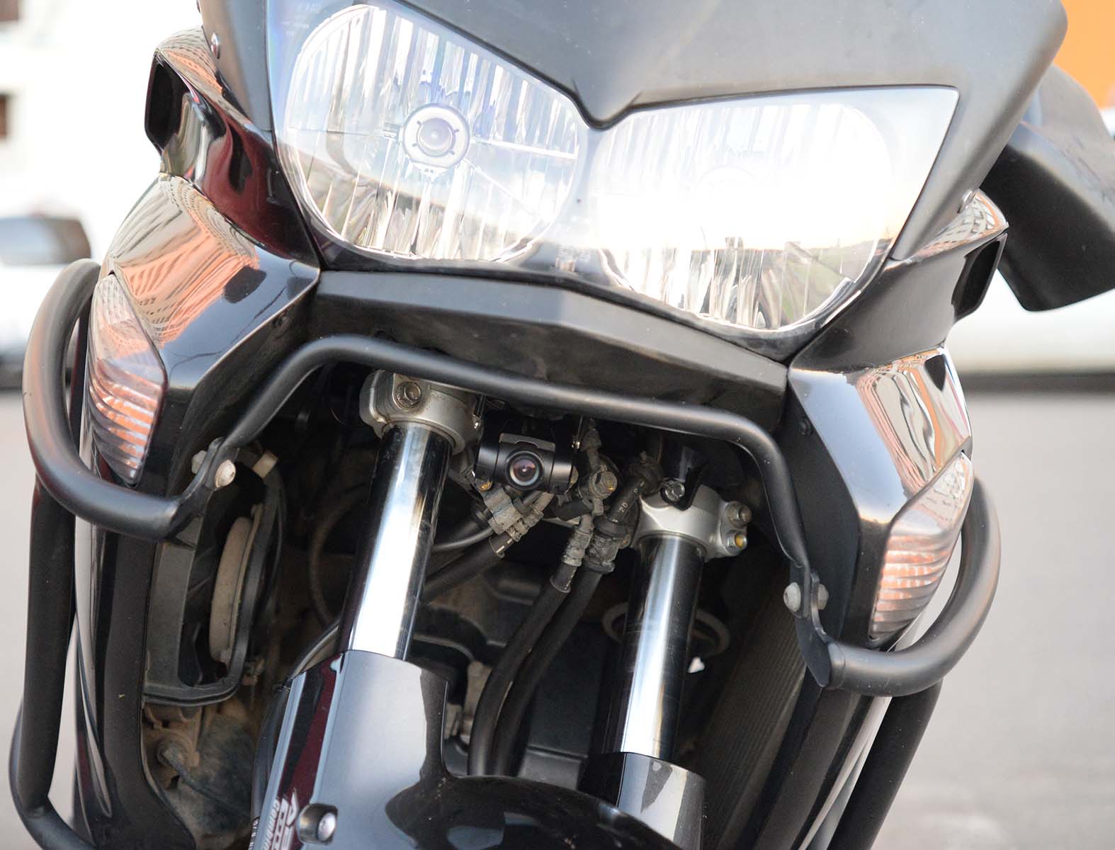 Рад представить вашему вниманию обзор первого в моей практике видеорегистратора для мотоцикла. Как известно, в нашей стране в этом сегменте до недавнего времени наблюдался определенный дефицит, особенно, в отношении моделей поддерживающих режим съемки FullHD. Либо такие решения стоили дорого. К примеру, вариант от BikeAmigo в комплекте из одной камеры обходится в 290 фунтов-стерлингов без учета доставки. В итоге для решения проблемы мотоциклисты чаще всего прибегали к помощи различных экшн камер, что вызывало сомнения в удобстве их эксплуатации. Прежде всего, вопросов автовключения, емкости аккумулятора и неудобстве использования в принципе. Как правило, наиболее удобным вариантом было крепление на шлем, но и оно у меня, честно говоря, вызывает сомнения. Теперь на рынке появился новый и факически единственный представитель подвида мотовидеорегистраторов китайский FOXeye CG1. В данном случае происхождение данного прибора пусть у вас не вызывает законных предубеждений: качество сборки и дизайн, на мой взгляд, на довольно высоком уровне и у меня не возникло ощущения дешевизны. Устройство выполнено по модульному принципу: основной блок записи с объективом, блок питания и небольшой блок индикации и управления. Все три блока соединены проводами между собой. Разъединить из нельзя. Такая конструкция подразумевает стационарную установку с размещением блока управления и ндикации под рукой на приборной панели или в любом удобном месте. Основной блок с камерой не могу сказать что суперкомпактный, но относительно небольших размеров. Скрыто разместить его можно, но все, конечно, зависит от конкретной техники на которой вы ездиете. Все компоненты регистратора выполнены в матовом черном. Это безусловно плюс. Исключение лишь составляет глянцевая обводка боковых ребер. Важно сказать, что у устройства отсутствует экран. Посмотреть записи можно либо через Wi-fi с помощью собственного приложения для Android или iPhone, либо полючить ПК через micro-usb разъем на основном блоке. Кстати говоря, не каждый micro-usb кабель может подойти из-за достаточно узкого входа. У меня подошел только фирменный от BlackBerry. К комплекту регистратора также идет специальная площадка с помощью которй он может крепиться к той или иной поверхности + большой набор скотчей и наклеек разного типа. Тест Foxeye я проводил на мотоцикле Хонда Варадеро 2009-го г.в. Мотоцикл достаточно крупный, однако решение вопроса места установки выглядело не вполне однозначным. В итоге я решил попробовать два варианта: Крепление на пластиковой площадке под головной фарой. Крепление на нижней площадке основания рулевой системы, прямо за двумя перьями и тормозными шлангами. По началу за и против каждого варианта было несколько соображений: Малая площадь и невысокая жесткость площадки в первом варианте и подозрения на нестабильность системы при разгонах и торможениях, а также на скорости. Одновременно с этим, у данного варианта степень заметности, на мой взгляд, была значительно выше, поэтому уже по этому поводу я его ставил под сомнения. Против второго варианта, в первую очередь, была завязка на рулевое управление. За - жесткость и площадь крепления, и степень заметности, естественно. Забегая вперед, скажу, что помимо всех этих опасений и предположений я не учел еще один важный параметр - высоту. Насколько это важно ост