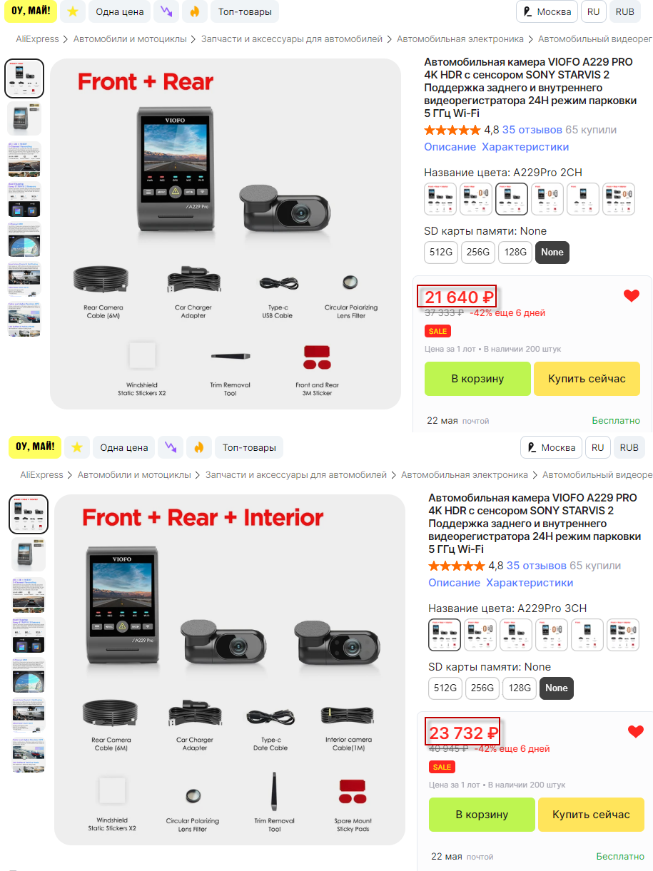 Воспользовался подсказкой. У меня получилось чуток дешевле и тоже Viofo official store карта памяти, 256Гб. Сегодня.
